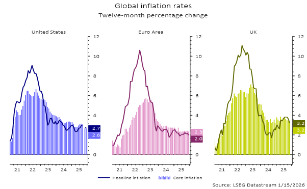 Estados Unidos destaca por su persistente inflación. La demanda interna sigue siendo fuerte y la inflación de servicios ha tardado en enfriarse. Además, el impacto total de los aranceles aún no se ha reflejado en los precios. Es probable que la desinflación continúe, pero no en línea recta. Todavía cabe esperar que la inflación estadounidense se acerque al 3% este año y para la Reserva Federal esto es sinónimo de cautela, independientemente de quién sea el futuro presidente de la institución.